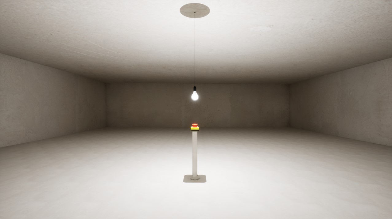 There’s a single red button in front of you.